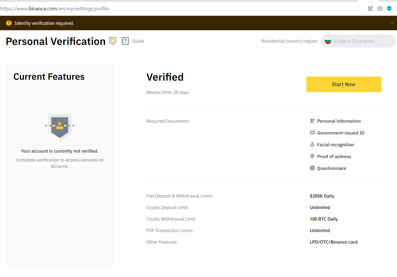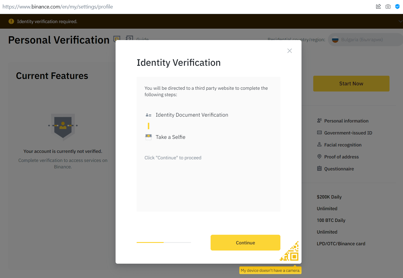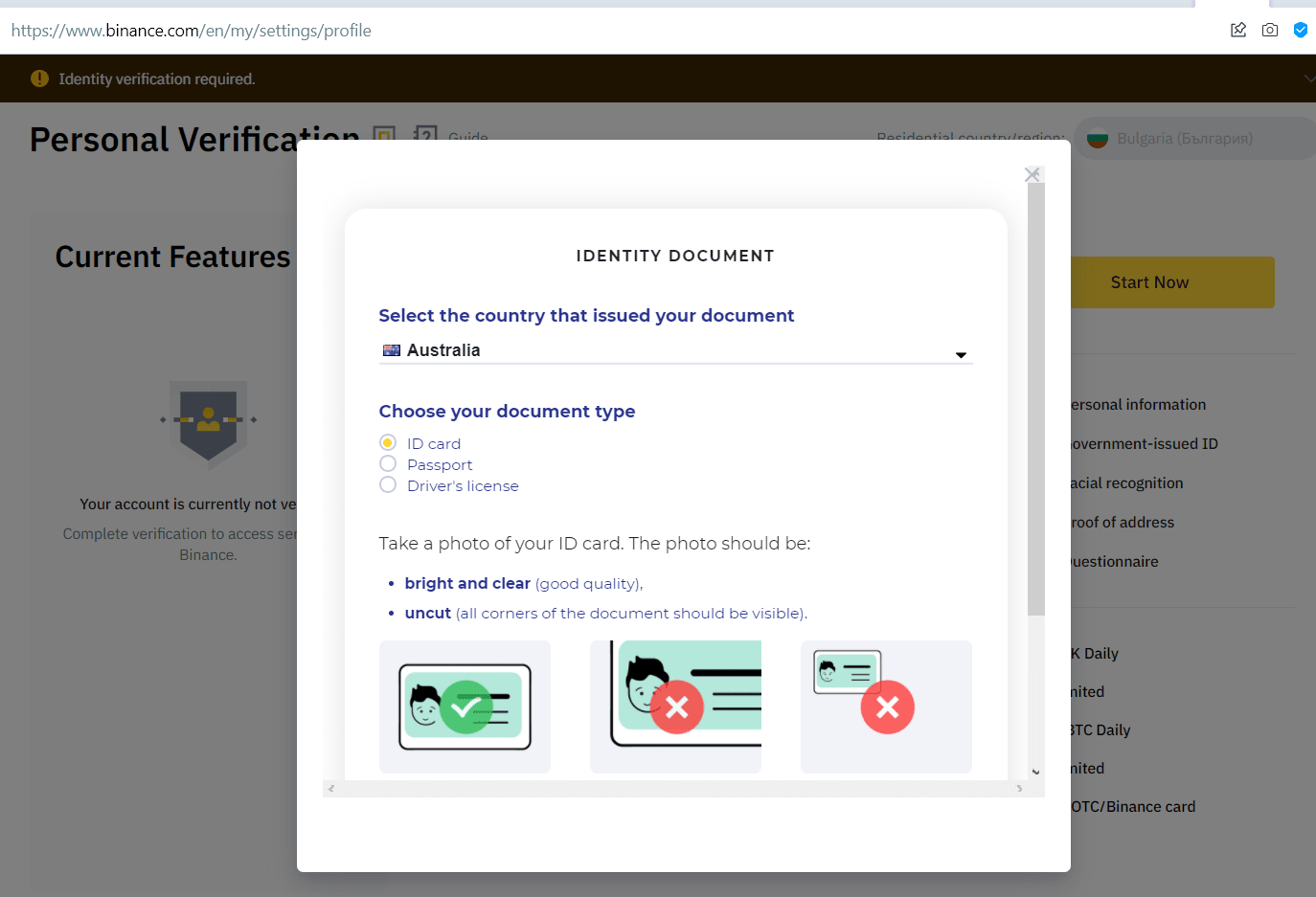 • First, you should set up an account in Binance if you don’t have one yet. After that you will be asked to verify your identity.